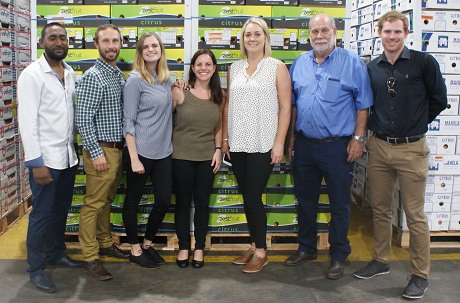 Zest Fruit's team at the launch: Hassan Cassim, Nico Vosloo, Margrethe Nel, Elzabé van Coppenhagen, Anita Kruger, Gerhard Greeff (Komati Fruit) and Byron Haycock