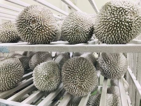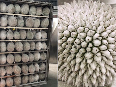 A significant difference between Malaysian and Thai durian is that Malaysian durian is only harvested at 100% maturity and full ripening stage where the taste & quality profile is at its best. Due to its uniqueness of harvesting at full maturity stage, Malaysian fresh durian does not have a long shelf life and this hampered its exporting potential. However, this changed when durian packing facilities in Malaysia started to use cryogenic nitrogen freezing technology to retain its freshness of the whole durian after harvesting and they were able to extend the shelf life from 5 days to 18 months. Cryogenic nitrogen freezing is a new method of freezing where the fruits and vegetables are exposed to an atmosphere below -60 Celsius through direct contact with liquidized gasses such as nitrogen and carbon dioxide which are common in our atmospheric air.