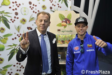 Agrimola sponsors supersport motorbike racer. Left, Luca Sassi