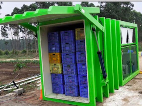 "Airflow cooling refers to a method where cold air circulates around the products to cool them. After packaging, the products can be kept in warehouses as low temperatures. There remains a space between the boxes of fruit and vegetables, and the cold air in the warehouses carries away the residual heat from the fruit and vegetables. This method is suitable for all kinds of fruits and vegetables. The advantages of this method include the following: clean and simple, the installation and maintenance cost is relatively low, and the pre-cooled products can be stored afterwards. The disadvantages include the following: the cooling process is slow and uneven. Furthermore, since the process takes a long time, this method is not suitable for leaf vegetables, which may dry out."