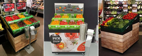 More often than not, supermarket sales displays appear a little untidy. Retailers need to effectively present their fruit, vegetables, flowers, plants, and herbs. To meet this need, an Austrian company, Pack'nlog, came up with an affordable display solution. It can easily be adapted to any campaign too. Bizerba is the distributor for the Dutch and Belgian market.