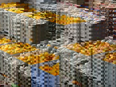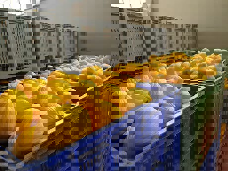 "We process and package the fruit with specific machinery we only use for canary yellow melons. The freshly-harvested produce arrives in bins, then it is washed, brushed, graded and packaged. The most popular packaging is 40x60 cardboard crates created specifically for these melons, but the 30x40 and 30x50 formats are also available."