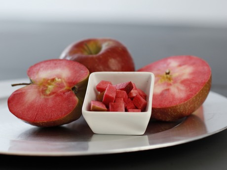 "Historically, the red-fleshed varieties haven't eaten well," he said. "But the thing that is different about this is that it does eat well. While it is hard to answer what it tastes like, because taste palettes are different, it's has a mix of sweet and tartness - a good balance of both. It has high sugar, which really comes out, with that hint of tartness. But that drops away the longer it is in storage."