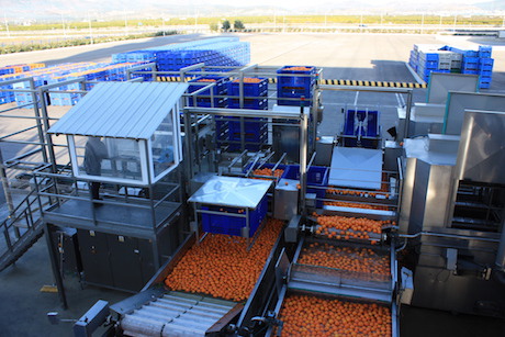 Unloading of oranges in the first phase of a Spanish juice processing plant
