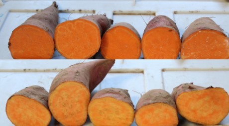 Radiance (top photo) compared to the Convington (below) sweet potato.