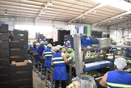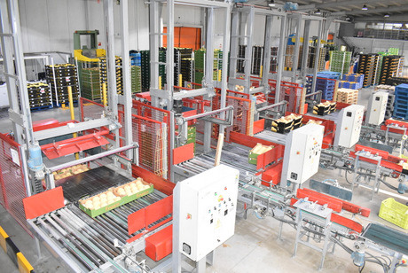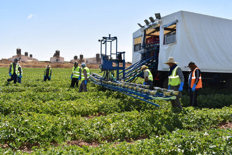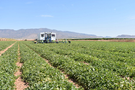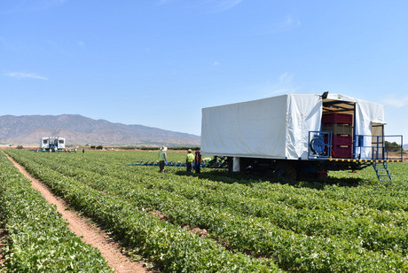 Melons are harvested using the same machines as those used to harvest iceberg lettuce. However, the iceberg lettuce is packaged directly on the field. The melons are packed in the packaging plant. This washing, sorting, and packaging plant can pack 60,000kg of melons or 14,000kg of bell peppers per hour. Fruca also has 42,000m3 of cooling space, which includes four vacuum coolers.