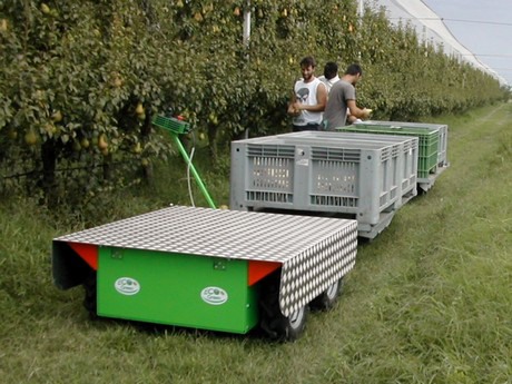Helpy, an electric tractor for the transport and towing of fruit bins by Ecogreen Italia is suitable to harvest apples, pears, peaches, oranges, kiwifruits, etc.