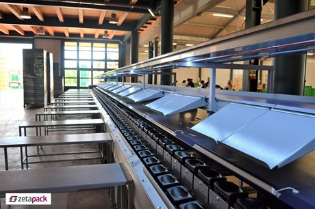 The grader can be used with a wide variety of ripe fruits - apricots, persimmons, pears, apples, peaches and nectarines - also thanks to interchangeable cups. All Zetapack graders are patented.
