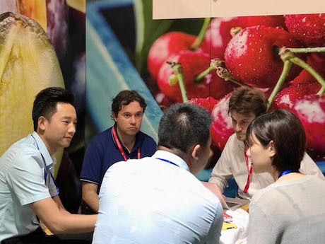 The chairman and other representatives of Yuehao in trade negotiation with Cerasus at the Guangzhou World Fruit Exposition