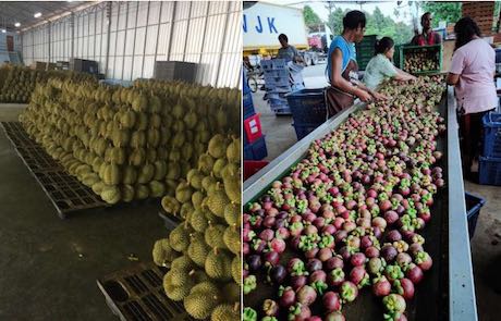The Yuehao company team carries out strict inspection of "Gold Sea" durian and mangosteen in Thailand