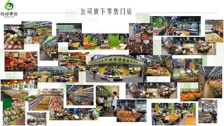 Pictures of some of the 60 fruit stores under the banner of the company distributed across Shanghai