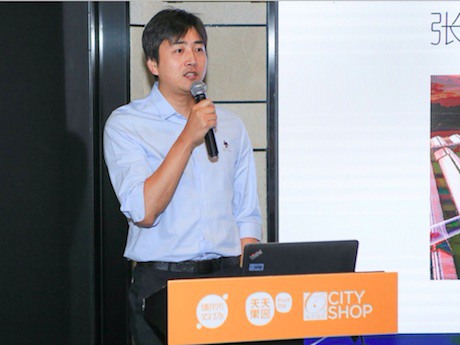 Xu Xiaofeng, executive director of Fruit Day and City Shop, gives a speech