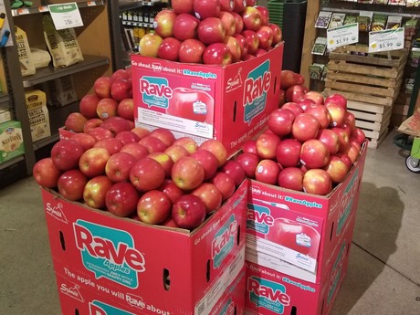 The Rave apple, from Stemilt Growers in Wenatchee, Wa., is an apple bred by David Bedford of the University of Minnesota—the same person behind the Honeycrisp apple. The other part of the apple’s parentage is the MonArk apple.