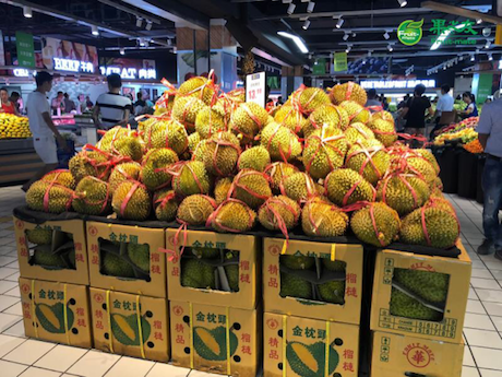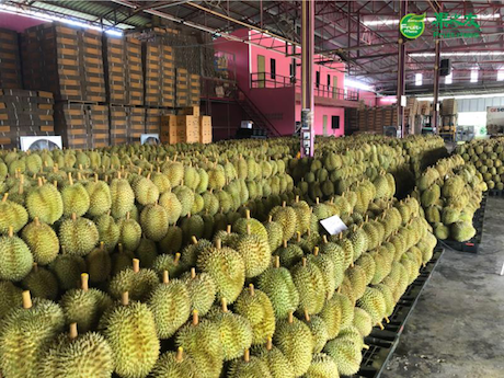 "Our import volume of durian has soared in the last 5 years. We used to import around 300 shipping containers full of durian every year, but now we import more than 1500 containers per year. The Mon Thong durian from Thailand is currently the most popular variety in the Chinese market.