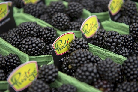 Freshly harvested greenhouse blackberries