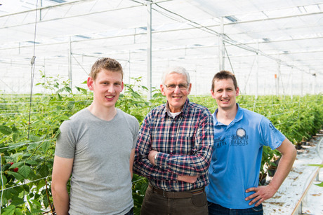 Geert-Jan and his brother, Kees, with their father, in a photograph in the raspberry greenhouse