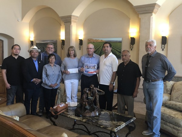 John D’Arrigo and his wife Sandy D’Arrigo presented a check to support the Fallen Heroes Highway Memorial Project to Monterey County Supervisor Luis Alejo. The photo above was taken during the check presentation at the headquarters of D’Arrigo California in Salinas, CA.