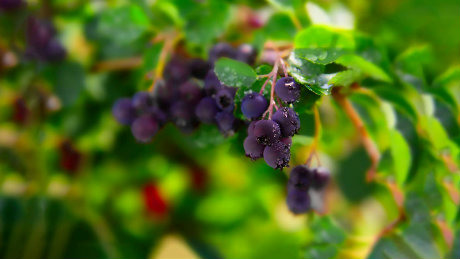 Saskatoon berries (Amelanchier alnifolia) look much like blueberries, many describe the taste of saskatoon as having a sweet, nutty almond flavor.