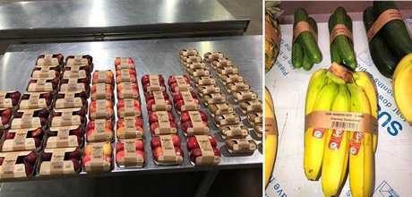 Banding of peaches, nectarines, kiwis on carriers and bananas, cucumbers, zucchinis without carriers.