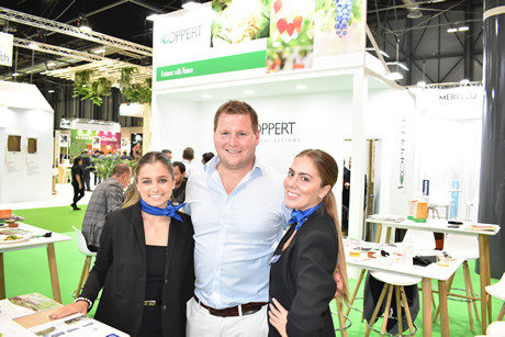 Boaz Oosthoek of Koppert Biological Systems stands among two lovely ladies.