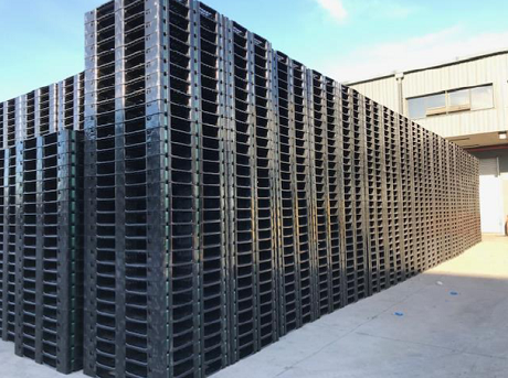 Their plastic pallets have a racking capability of 1.2 tonnes. The only virgin plastic on the pallets are the three straps across the length, slightly wider than usual, that act as pre-cast beams, much reducing the possibility of collapse of pallets holding heavy fruit like citrus or apples.
