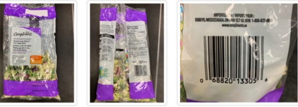 The recalled kale salad is packaged in 255-gram plastic bags with a UPC number of 0 68820 13305 6 and one of the following best-by dates: 19 OC 28; 19 OC 31; 19 NO 01; 19 NO 02; 19 NO 03.