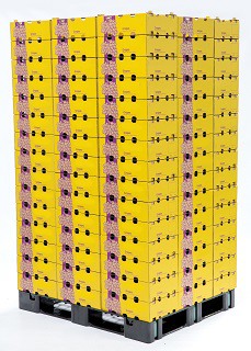 The fruit pallets are manufactured from recycled PET, incorporating a lot of plastic that wasn’t recycled before and taking 400 tonnes of plastic waste, primarily water and cooldrink bottles, from the South African waste stream at the moment.