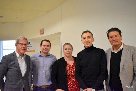 Otto de Groot (Otflow/HDG), Rogier Rook (Nature's Pride), Claudia Glaser (Seatrade), Michiel Minnaar (Otflow), and Pieter Baggen (Phoenix Food Group).