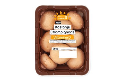 Retail packaging Vitamine D mushrooms at Jumbo Netherlands