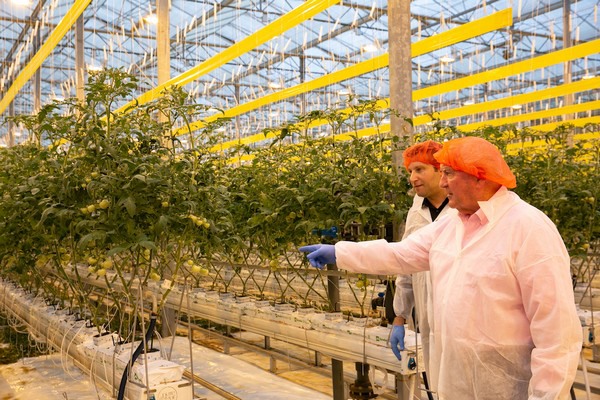 A visit to Pure Flavor®’s Fort Valley, GA greenhouse from US Secretary of Agriculture Sonny Perdue this fall is helping fuel enthusiasm & support for the growers second growing season in Georgia. Coming off a successful first year, the company has transitioned all of Phase 1 (25 acres) to be focused exclusively on tomatoes this winter.