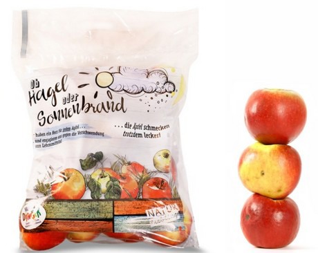 ALDI Nord and ALDI SÜD sell apples damaged by hail: These so-called "weather apples" are apples that have suffered from extreme weather conditions and are scarred by too much sun or hail, for example. Despite their blemishes, they find their way onto the ALDI shelf because they taste just as good as their flawless siblings. The weather apples are available this week as promotional items in all ALDI branches. The weather apples are particularly suitable for further processing, certainly at Christmas time, for desserts for example.