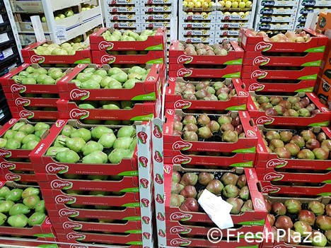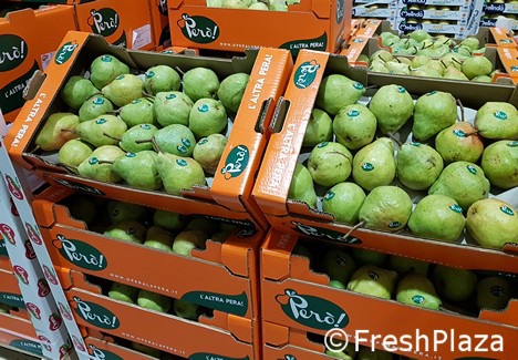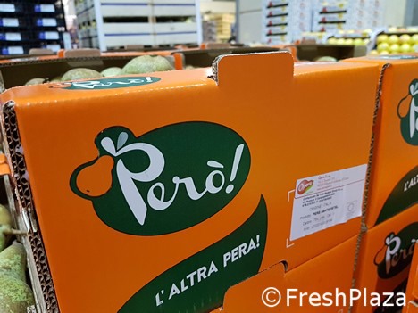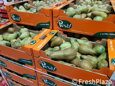 A new packaging for Opera pears is now available in various wholesale markets. The orange Però!L'altra pera! crates stand out immediately.