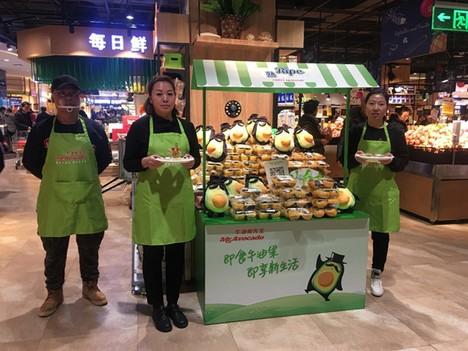Mr. Avocado launched a free tasting event at the B.U.T Mart store at Hongbo Central Park in Harbin. Customers who visited the shop also enjoyed a “buy one get one free” offer. The event started on the 2020 New Year's Day, and in just two days, Mr. Avocado has gathered a large number of fans who appreciate ready-to-eat avocados.