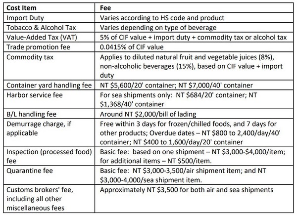 Source: Food and Agricultural Import Regulations and Standards Country Report Taiwan