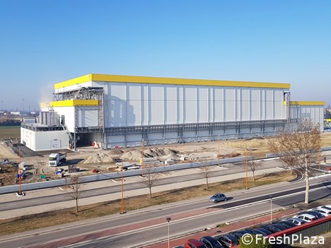 The new extra large frozen food cell Orogel, located in Cesena right next to the production site, costing 40 million euro, is now fully operational. The warehouse runs completely automatically, occupying an area of 14 thousand square meters (for about 230 thousand cubic metres in volume), and can store 35 thousand tons of frozen product at minus 25 degrees Celsius. Vegetables have been frozen and stored in the warehouse for several weeks now.