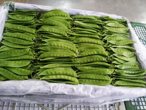 When asked about the advantages of their products, Alular explained, "We have exported snow peas for many years now. Overseas clients have come up with a great variety of requirements for product standards in recent years. The advantage of our products is that we can adjust the packaging and the product standards according to the requirements of every individual order regardless of size. We deliver custom-made service to our clients. For example, the snow peas exported by most Chinese companies are around 40-60 mm. However, some clients require smaller snow peas, so we select our products to filter out the snow peas between 35-55 mm."