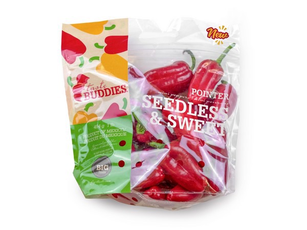 A new veggie debuting in the produce section is showing success. Taste Buddies® sweet and naturally seedless mini peppers are grown year-round in the Mexican sun.