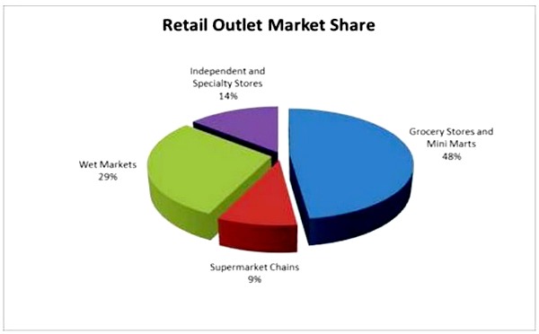 Ecuador's retail food sector is divided into five main categories: supermarket chains, outdoor markets, independent grocery stores, small grocery stores and neighbourhood stores. The monthly expenditure on food is on average around $ 250 (€ 225). 48% of the Ecuadorian population buys their food from local grocery stores. However, sales in supermarkets are increasing, partly due to the greater availability of imported products. Most supermarket chains have stores in large and medium-sized cities. In many small cities these supermarkets operate under different names.