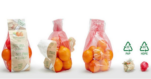 Thanks to the reduction in plastic content and its partial replacement with paper, the new line is extremely lightweight, compared to both non-recyclable mixed poly-bonded and single-material versions. In practice, the 1 kg size of Rosapack and Sormabag, weighing 2.79 g and 2.22 g respectively, is even lighter than clipped net bags, which weigh 2.88 g and are not recyclable. Specifically, the 1 kg Sormabag weighs less than a 1 Euro-cent coin.