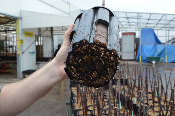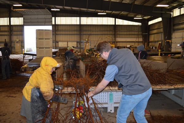 “The big benefit of container nursery is the ability to respond quicker to demand,” Burky mentioned. In the apple industry for instance, varieties change fast. “From one year to the next, one variety can become very popular or unpopular.” With field grown nursery, it takes about two years from rootstock (for some products like walnuts, it’s even three years) until digging the tree in the field and by that time, you may have missed a change in demand. With container nursery, this process is much shorter. “We try to anticipate what the big and popular varieties will be to respond to our customer’s demand,” he said.