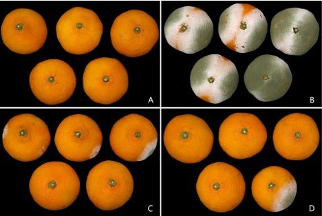 Citrus is one of the most important fruit crops in the world, and they are particularly susceptible to postharvest damage before they reach the market for fresh consumption after storage. Green mold caused by Penicillium digitatum is considered to be the main postharvest pathogen of citrus fruit with up to 60–80% decay under suitable environment conditions.