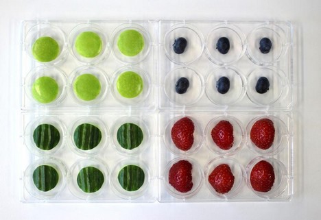 Apples, cucumbers, blueberries and strawberries contaminated with noroviruses in an experimental setup on multiwell plates/ Picture: Technical University of East Westphalia-Lippe