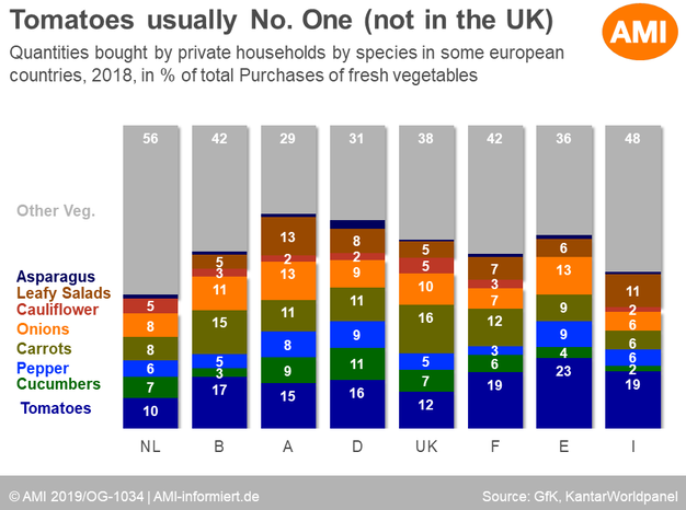 Tomatoes are the most popular fresh horticultural products in almost all European countries (except for the UK, where carrots are the most popular). Spain, Italy and Poland are the main buyers and consumers, especially during the summer months but, if we look at the turnover, the differences are not so great.