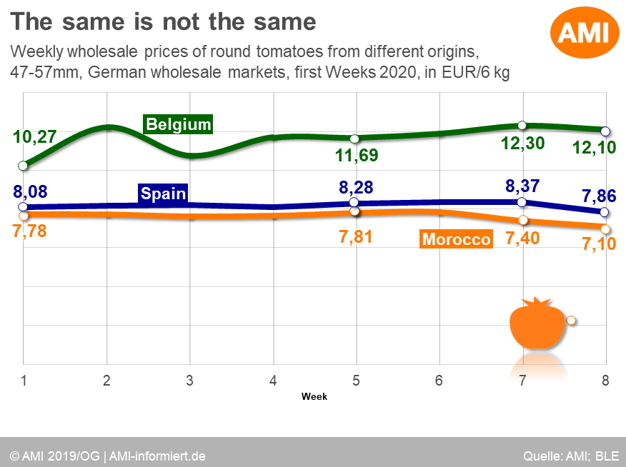 As for the prices of fresh tomatoes on the European market, they tend to be more stable than those of other vegetables. In addition, the same product can have a different price depending on the origin: it is not so much a question of quality, rather than supplier image (reputation).
