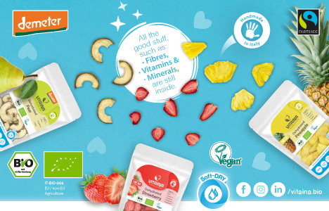 "Consumers nowadays are very careful: they prefer healthy food and are constantly looking for superfoods, boasting excellent nutritional properties. I have therefore started to think about a product that satisfied this need and came up with healthy, genuine, dehydrated fruit made using high-quality raw material," explains Maximilian Feulner, founder and general manager of Vitaina Italia Srl, a startup specializing in the production and processing of organic and biodynamic fresh fruit.