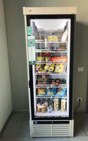 The residents can view the products from the large front window, unlock and open the fridge via the dedicated app, choose the products they need and complete the purchase by simply closing the fridge door. The system will detect the operation and charge the customer for the cost of the products chosen, on the payment system entered on the app at the time of registration (digital restaurant tickets or credit card, for example).