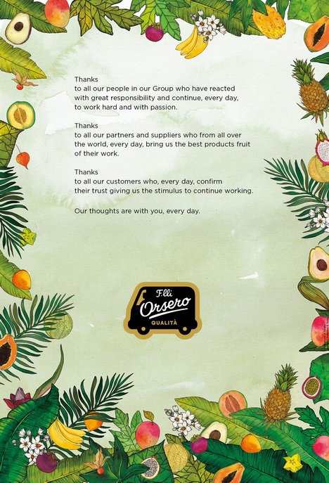 In the current emergency situation due to the pandemic from Covid-19, the Group intends to share with FreshPlaza readers and with all professionals in the fruit and vegetables sector its heartfelt thanks to employees, partners and customers, with this letter, which we quote in full: