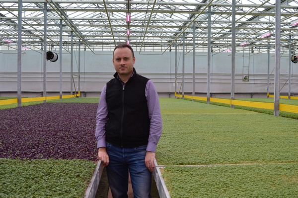 Nicolas Mazard in Flavour Fields' greenhouse on Long Island, NY.
