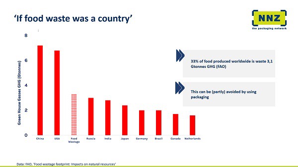 This multinational company offers a wide range of packaging to the fruit and vegetable, and the industrial sector. “We see that our fruit and vegetable clients are looking for the best sustainable packaging solutions,” says Alies. That is why, using their Future Route method, NNZ gives clients insight into the sustainability of different aspects. It then becomes clear how, when it comes to food wastage, clients can deal with packaging. And figures show that a substantial amount of food is being wasted. The FAO (ref. 1) shows that about 33% of globally produced food is lost.