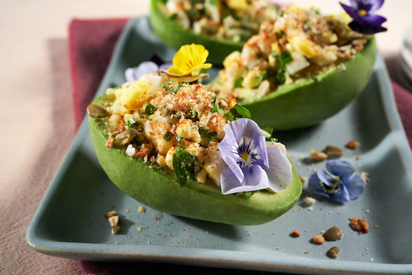 For an elevated twist on an all-time favorite, Chef Brad Cecchi turns the avocado toast inside out. “Avocado toast will always be a staple dish, but we really wanted to showcase the shape and texture of the California avocado in its entirety, keeping both avocado halves perfectly intact and stuffing them with breadcrumbs and your favorite toppings,” said Cecchi. Cecchi has a passion for Northern California growers and artisans, making California avocados a consistent pick for his seasonal fare.